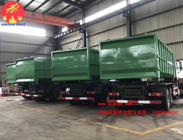 該車型采用重汽豪沃后雙橋336馬力專用底盤,上裝是可伸縮勾臂式結(jié)構(gòu),氣動(dòng)控制,鋼絲胎。