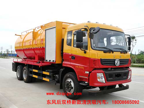 底盤說明:東風153G豪華駕駛室或東風D913仿天錦駕駛室,4350+1300mm軸距,玉柴240馬力發(fā)動機,小八檔變速箱,5t/10t雙后橋,10.00-20輪胎,帶ABS,下防護。吸污罐體有效容積:13.6立方米,水罐罐體有效容積:10.9立方米。外形長/軸距對應關系為(mm):9450/4350+1300,9850/4750+1300。 清洗部分主要配備:配備大流量的高壓清洗泵。國產配套件液壓 驅動系統(tǒng),高壓軟管,液壓驅動卷盤懸掛在后開啟門上,碳鋼噴頭,夾心取力器,罐體形狀為圓罐,機械操作。主要用于清洗城市下水道、管道的沉積物、死角泥溝的疏通。也可用于清洗工業(yè)排液管道、壁面等,緊急時可用于救火。 吸污部分主要配備:加裝副發(fā)動機組配備山東水循環(huán)真空泵。罐體后封頭球閥控制自流口1個,1個視污窗。一次性成型舉升式罐體,罐體兩則油缸,后蓋液壓開啟,機械鎖緊,帶液位報警。主要用于下水道、雨水井、檢查井、化糞池及各種溝渠內的污泥、糞便或石油化工廠污水池淤積物的抽吸、裝運和排卸。 P.S.水罐和吸污罐為兩個獨立罐體,清洗功能時用水罐,吸污功能時用吸污罐,清洗吸污兩種功能不同時使用。可加裝灑水裝置,選裝低水位報警裝置。 |