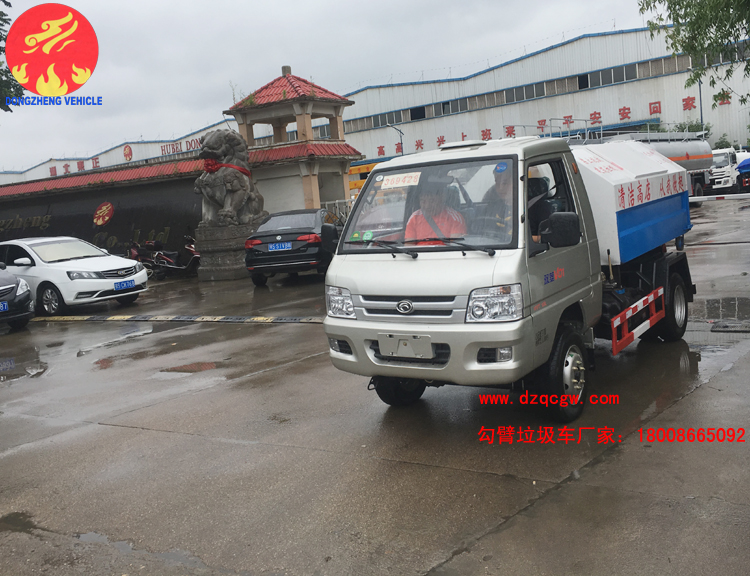 我公司生產(chǎn)的勾臂垃圾車采用高新設(shè)計可伸縮的鉤臂,實現(xiàn)垃圾廂的二次吊裝,自吊上放下,可自行傾倒垃圾。該車結(jié)構(gòu)簡單,操作穩(wěn)定方便,裝卸效率高,機(jī)械化程度高,節(jié)省人力。一車可帶多個大廂,在裝卸的運(yùn)輸過程中可有效地避免二次污染。
