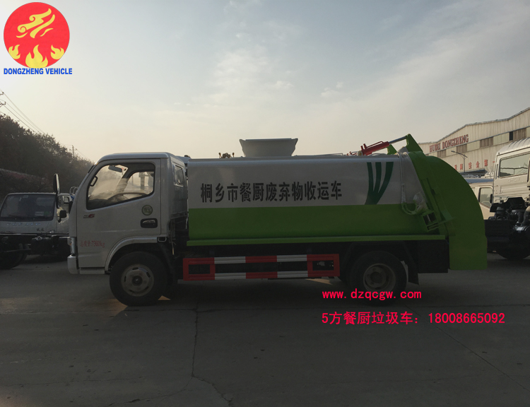 浙江省嘉興市桐鄉(xiāng)市政在我公司訂購6臺餐廚垃圾車,該餐廚垃圾車采用東風小多利卡國五底盤,朝柴102馬力,3308mm軸距,鋼絲胎,ABS。圓形碳鋼罐體,罐體厚度5mm,拉桿提升機帶上蓋聯(lián)動;后蓋液壓開啟;內置推鏟卸料,帶渣液分離功能。餐廚垃圾車可分罐式和廂式。