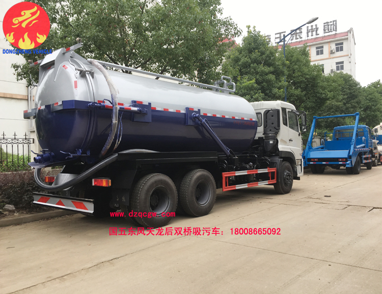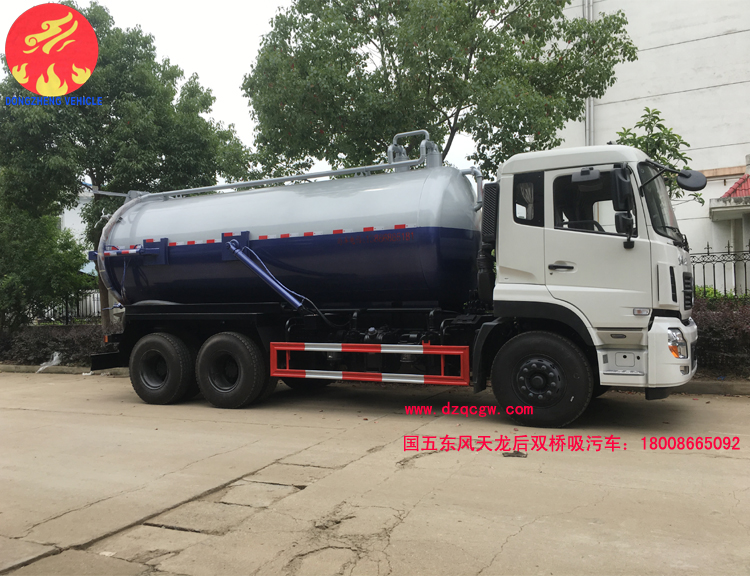 底盤說(shuō)明:東風(fēng)天龍后雙橋底盤,國(guó)五康明斯發(fā)動(dòng)機(jī),7T前橋,10噸后橋,陜齒9檔變速箱,11.00R20鋼絲胎,帶空調(diào),ABS。該車用途為吸污,主要裝置為污罐.罐體有效容積:15.48立方米,介質(zhì):液態(tài)污物,罐體外形尺寸(直段長(zhǎng)×直徑)(mm):5600×1950,5300×1950.選用4350+1350mm軸距。 |