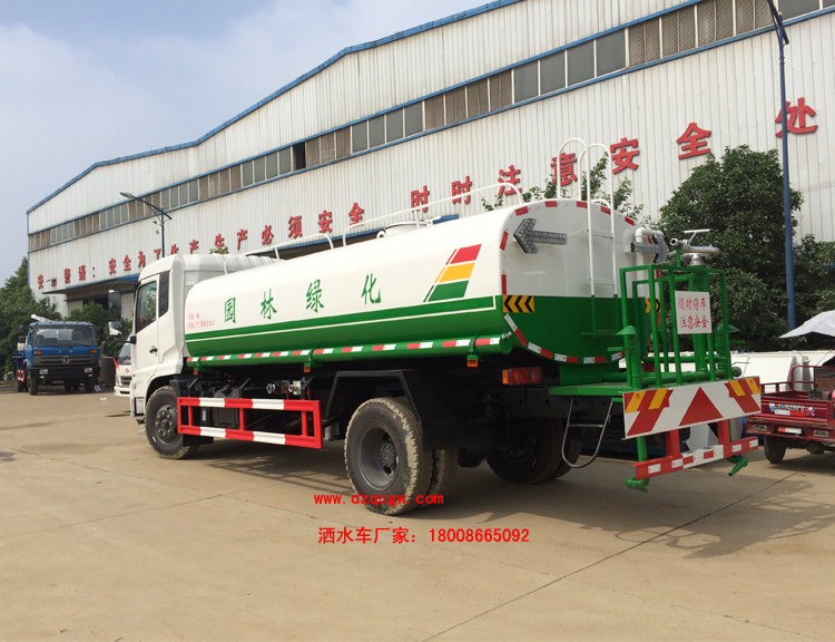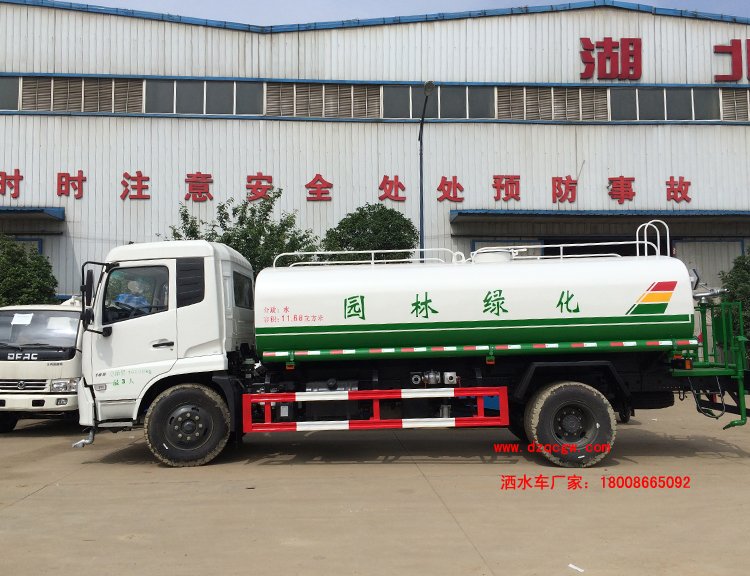 底盤說(shuō)明:東風(fēng)天錦國(guó)五底盤,國(guó)五康明斯發(fā)動(dòng)機(jī),4.5T前橋,9噸后橋,東風(fēng)6檔變速箱,9.00R20鋼絲胎,帶空調(diào),ABS。外形長(zhǎng)8600,8400mm與軸距4700,4500mm一一對(duì)應(yīng),罐體有效容積:11.15立方米。運(yùn)輸介質(zhì):丙酮水溶液。帶免征。 專用功能:該多功能灑水車適合于各種路面的灑水、噴霧、降溫、除塵、沖洗塵埃臟物,亦可用于園林綠化、市政環(huán)衛(wèi)、路面養(yǎng)護(hù)及應(yīng)急消防、運(yùn)輸飲用水等。專用部分由罐體、水泵、球閥、輸水管道、灑水裝置等部件組成。水泵、取力箱、球閥均為國(guó)家定型產(chǎn)品,具有性能良好,工作可靠、壓力高、流量大、油耗低等特點(diǎn)。 改裝部分:標(biāo)配前沖、后灑、側(cè)噴、工作平臺(tái)、綠化高炮、自流閥、消防接口,輸水管3米2根,8噸以上罐體帶高位花灑2個(gè),億豐泵或金龍泵,控制方式為手動(dòng)。選裝氣動(dòng)閥門控制;高位花灑,大鴨嘴,藥盤,罐體側(cè)面加裝萬(wàn)向可調(diào)節(jié)噴頭,罐體后部壓塵噴灑裝置,兩個(gè)圓警燈或長(zhǎng)警燈,LED箭頭燈,泵可選裝威龍泵或農(nóng)藥噴霧裝置。 |
