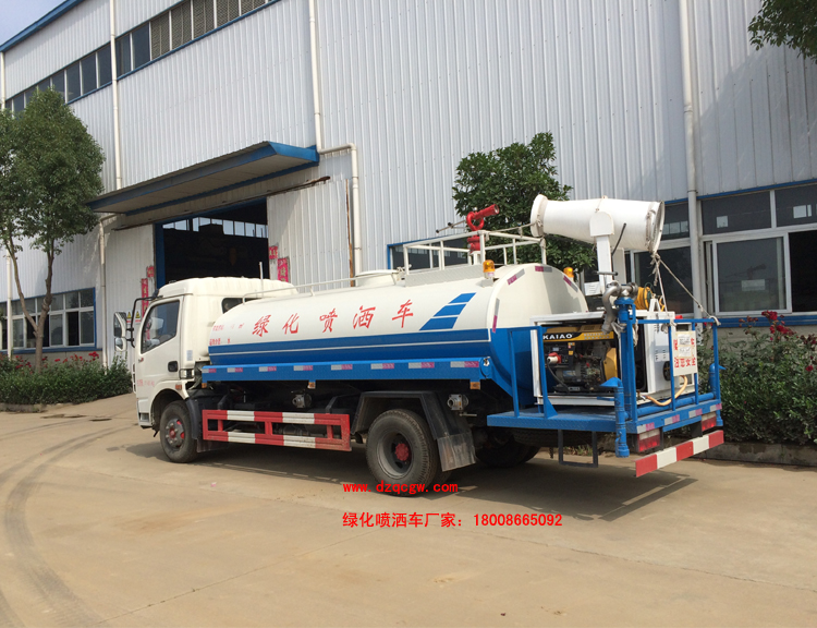 底盤(pán)說(shuō)明:東風(fēng)多利卡國(guó)五單排可翻轉(zhuǎn)駕駛室,3800mm軸距,多種可選國(guó)五發(fā)動(dòng)機(jī),萬(wàn)里揚(yáng)6檔變速箱,前橋2.1噸,后橋4.2噸,7.50R16輪胎,ABS,方向助力,斷氣剎。罐體有效容積:6.8立方米。 專(zhuān)用功能:該多功能灑水車(chē)適合于各種路面的灑水、噴霧、降溫、除塵、沖洗塵埃臟物,亦可用于園林綠化、市政環(huán)衛(wèi)、路面養(yǎng)護(hù)及應(yīng)急消防、運(yùn)輸飲用水等。專(zhuān)用部分由罐體、水泵、球閥、輸水管道、灑水裝置等部件組成。水泵、取力箱、球閥均為國(guó)家定型產(chǎn)品,具有性能良好,工作可靠、壓力高、流量大、油耗低等特點(diǎn)。 改裝部分:標(biāo)配前沖、后灑、側(cè)噴、工作平臺(tái)、綠化高炮、自流閥、消防接口,輸水管3米2根,8噸以上罐體帶高位花灑2個(gè),億豐泵或金龍泵,控制方式為手動(dòng)。選裝氣動(dòng)閥門(mén)控制;高位花灑,大鴨嘴,藥盤(pán),罐體側(cè)面加裝萬(wàn)向可調(diào)節(jié)噴頭,罐體后部壓塵噴灑裝置,兩個(gè)圓警燈或長(zhǎng)警燈,LED箭頭燈,泵可選裝威龍泵或農(nóng)藥噴霧裝置。 |